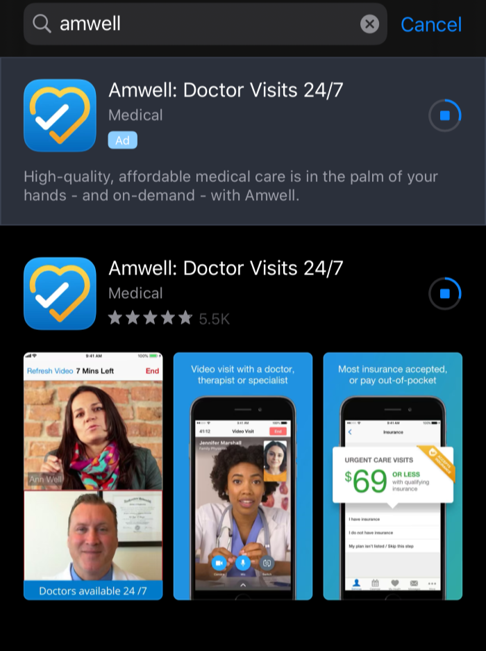Amwell is the nation’s largest telehealth company, connecting users with board-certified, licensed doctors, dieticians and psychologists for immediate and live, online visits—day or night, on either mobile or desktop.