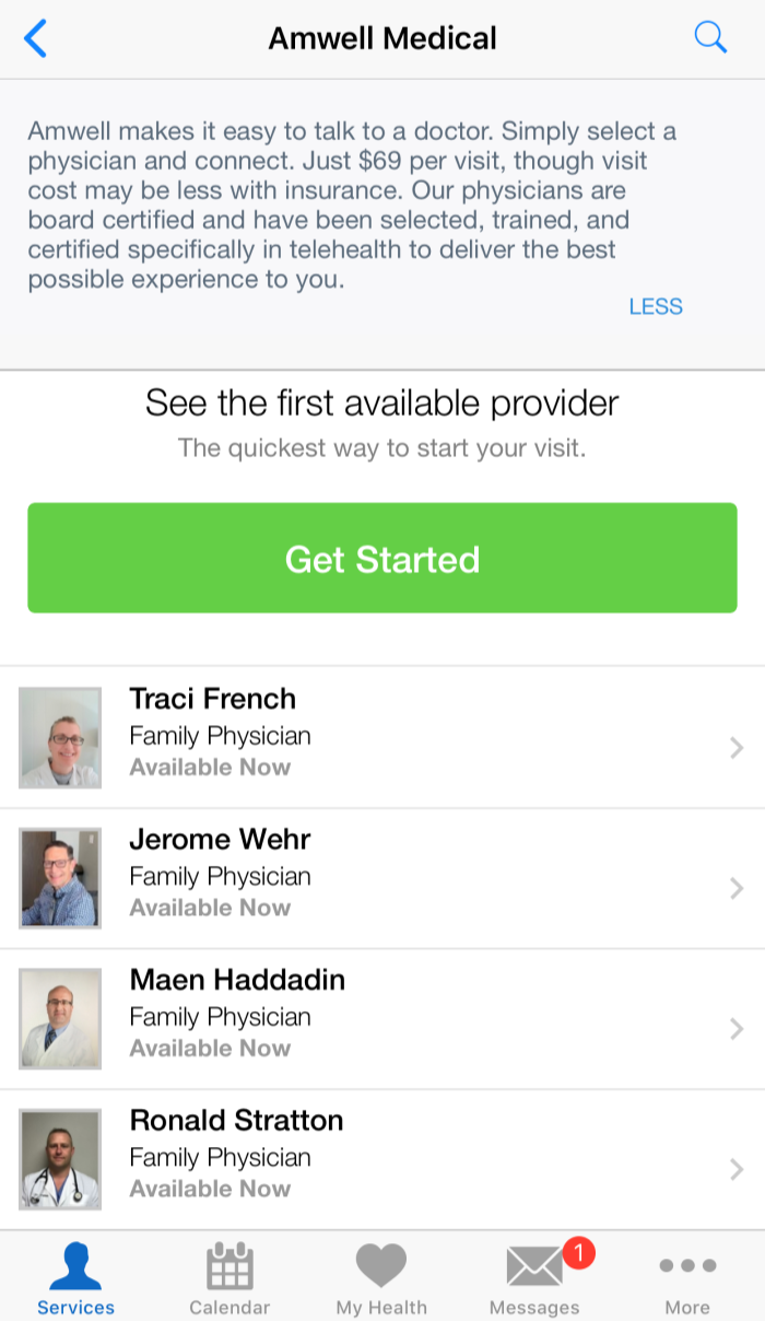 I was then brought to a page with physicians who were available to see me.