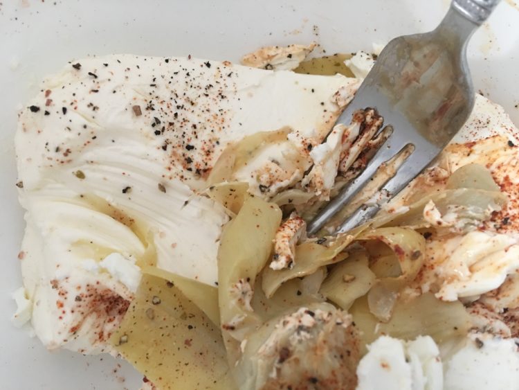 There were some things that make it a little bit different. It’s made with fresh, high quality goat’s milk that is collected from local, independent family farms. They also use traditional French cheese-making expertise to allow Montchevre to ensure the rich and smooth texture of their logs, along with their fresh and mild flavor that goat cheese enthusiasts know and love. Add in some seasoning and the amazingness that is artichokes and you’ve got the makings of my newest dip recipe.
